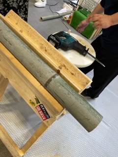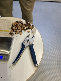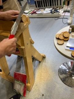 主婦、ウン10年ぶりのノコギリ!ブキッチョすぎて人の3倍時間かかるが既定の重さに切れてget!(上記の手は別の方の手です!主婦一人で行ったので、実演中の写真は撮れずで😥)